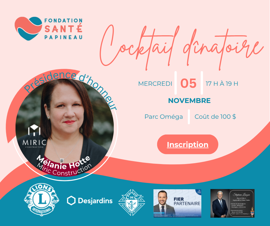 C’est avec une grande fierté que j’ai accepté d’assumer le rôle de présidente d’honneur du cocktail dînatoire de la Fondation Santé Papineau.