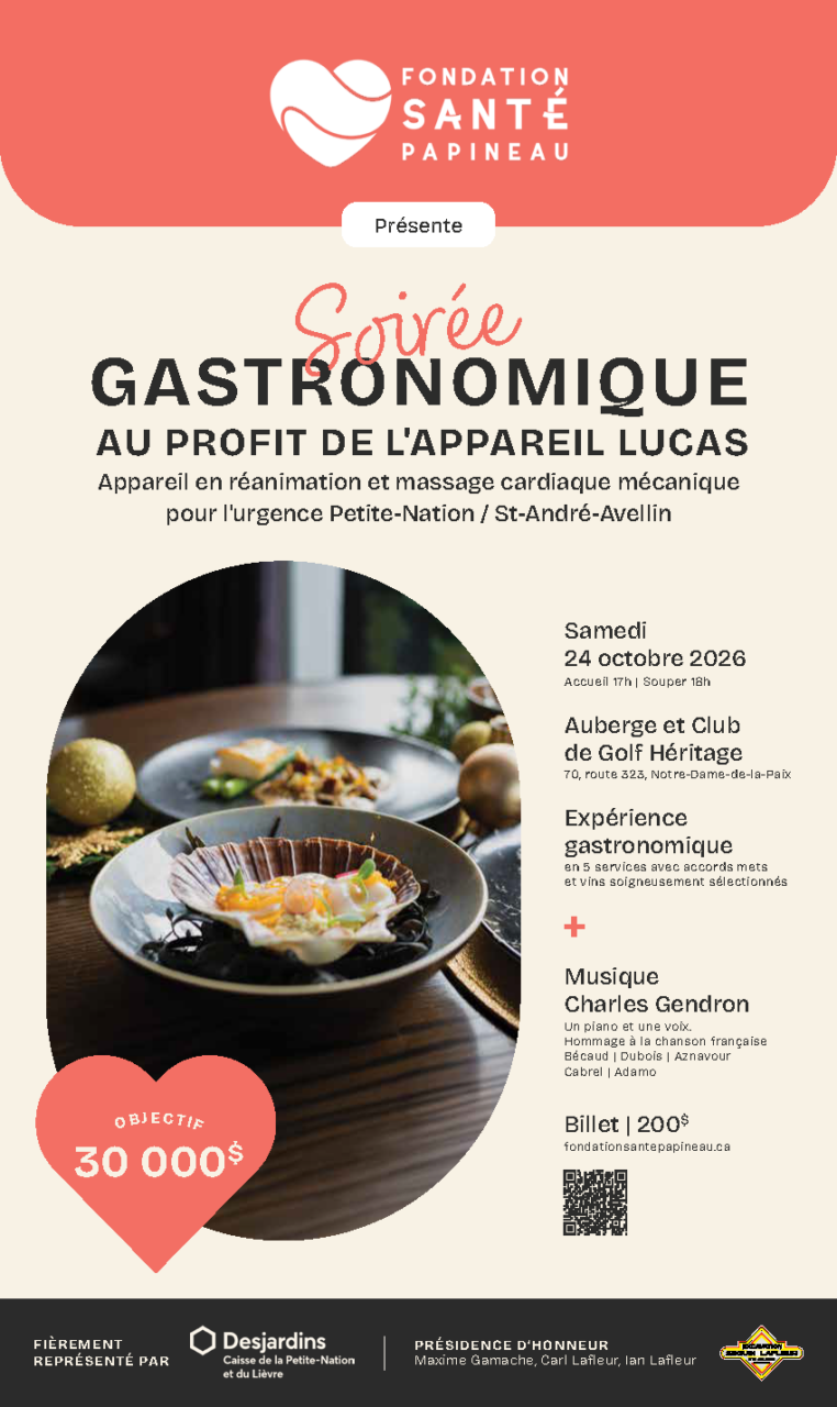 Vos commandites permettent l’achat d’équipements, le soutien de projets locaux et la qualité des soins offerts aux citoyens de Papineau. En prime : visibilité, réseautage et reconnaissance locale.